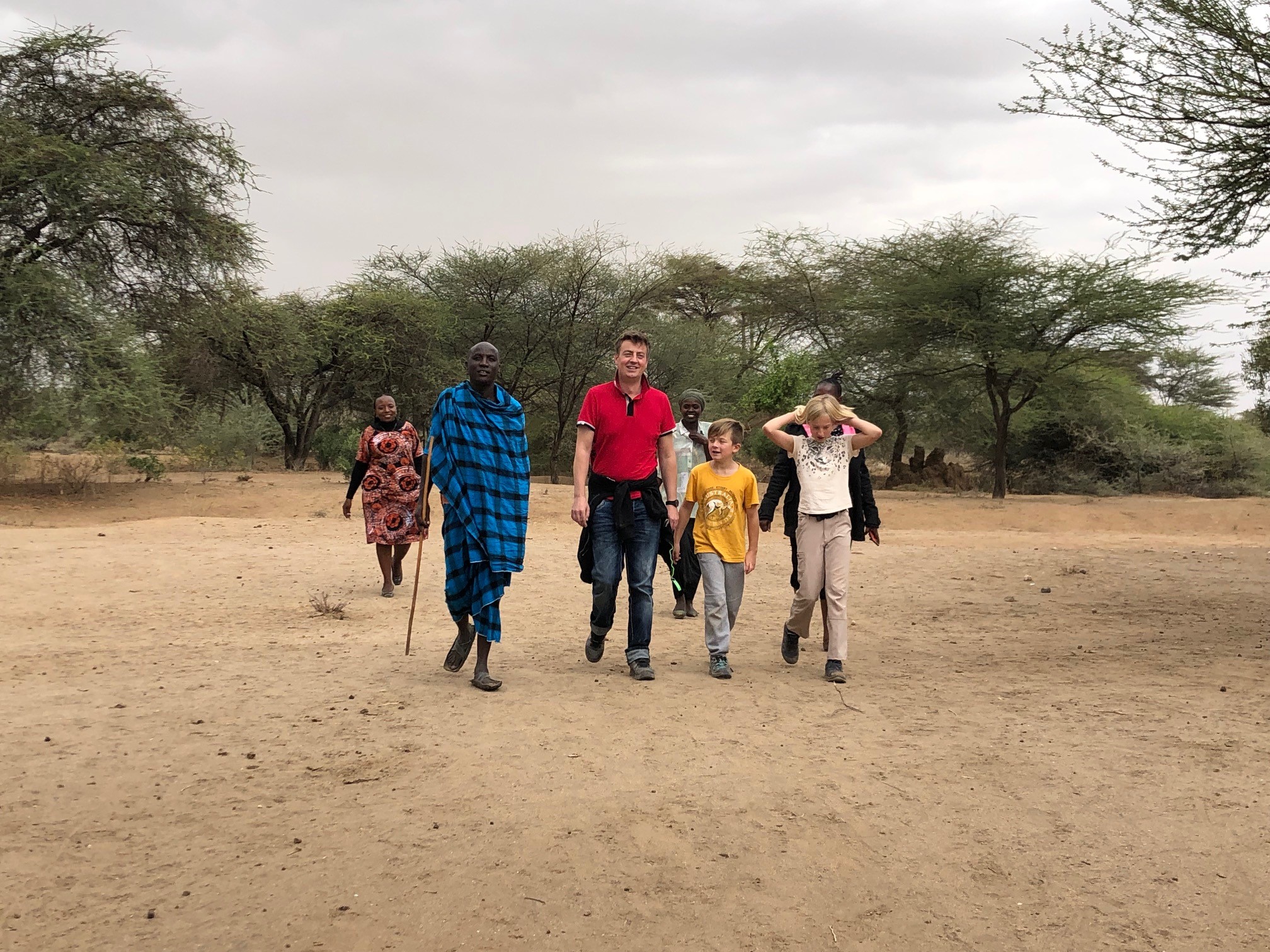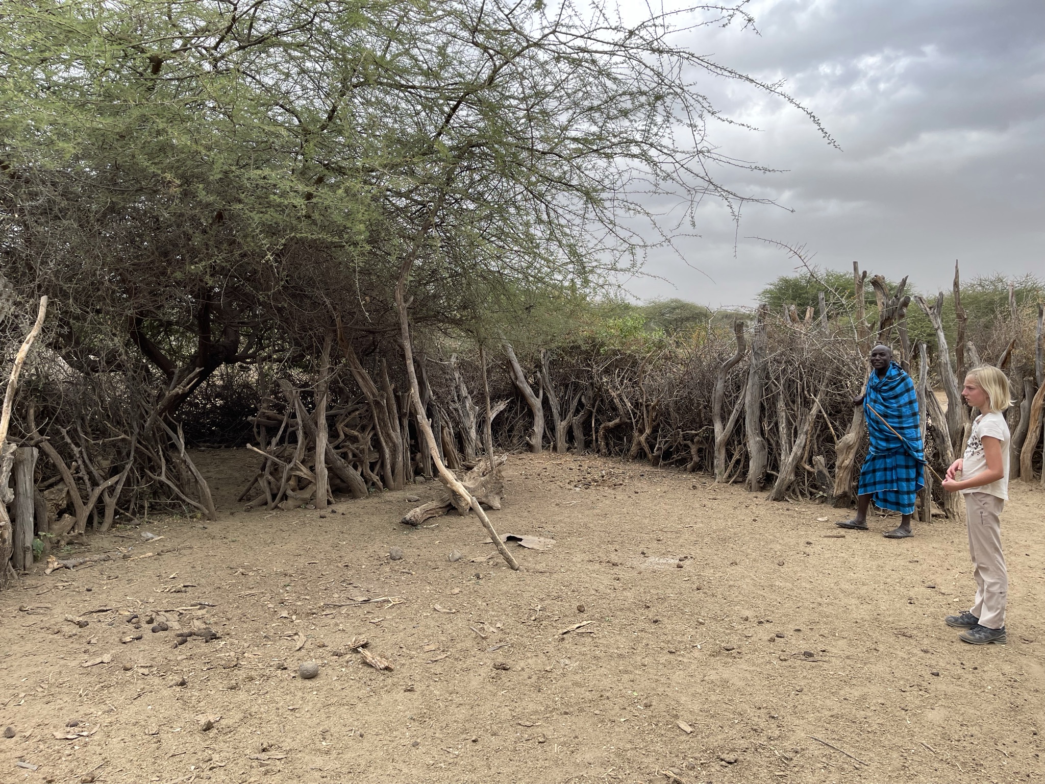 Nach dem Schulbesuch führte uns Maasai Dorfchef Jacob durch sein Boma (Maasaidorf)