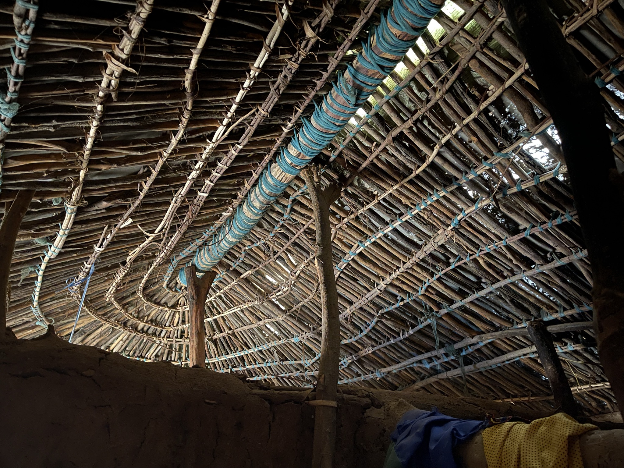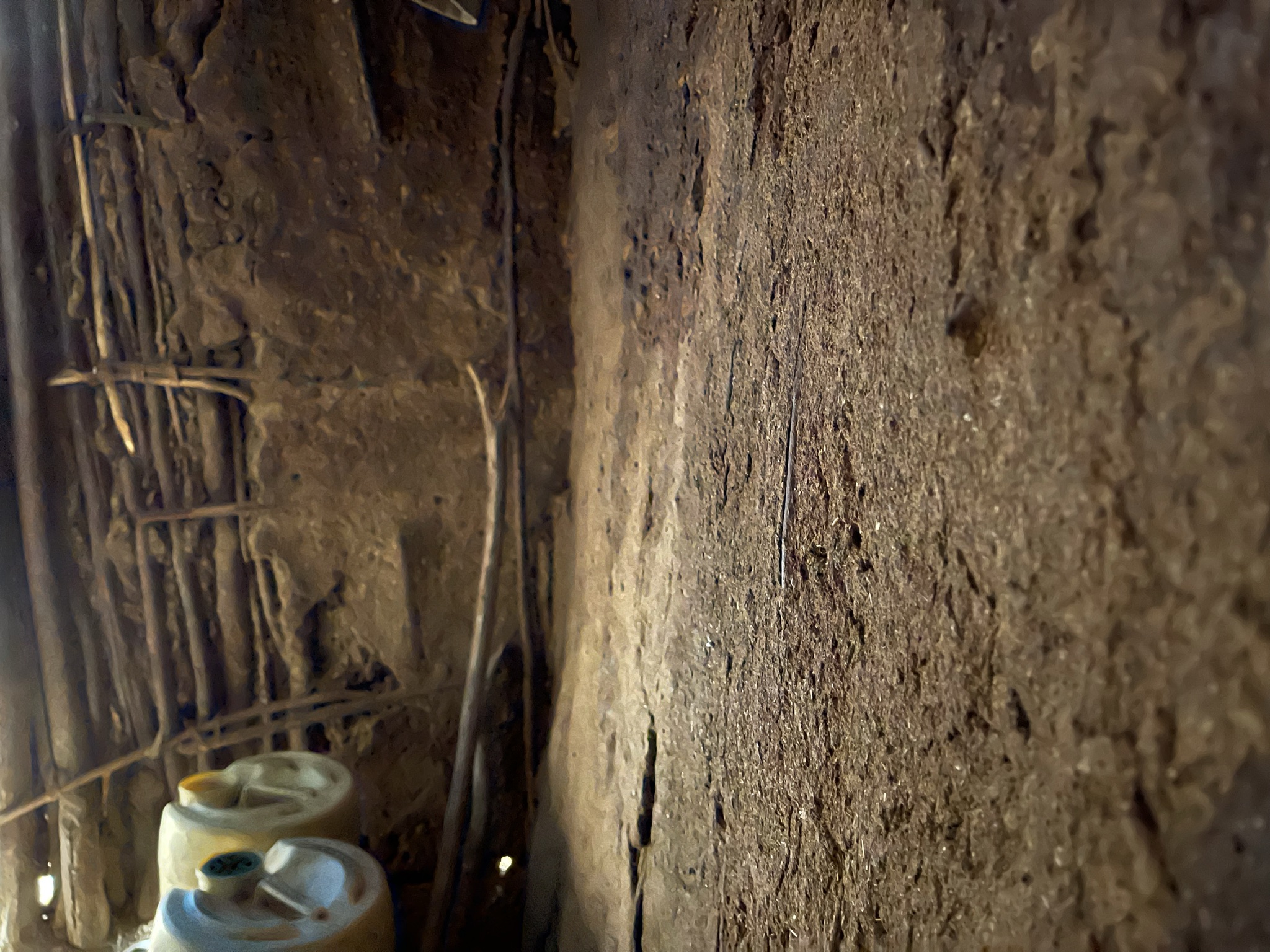 Die Wände werden mit Kuhdung und Lehm verkleidet