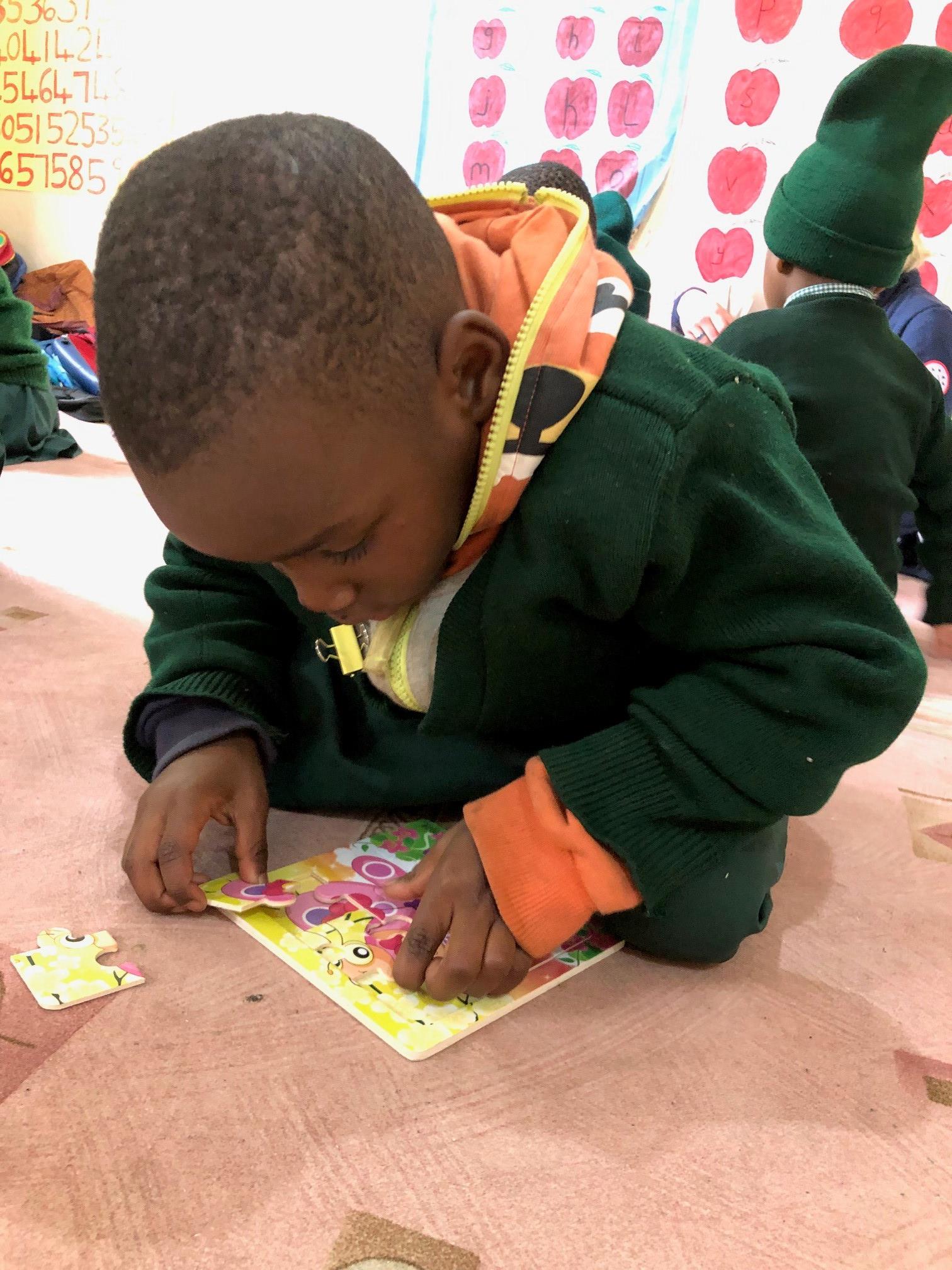 Daniel und Léonie gingen in jede Klasse und führten das Puzzle-Spielen ein. Zuerst wurde nur ein Stück entfernt, dann zwei, usw. Nach anfänglichen Startschwierigkeiten machten die Kids riesen Fortschritte! Einige können nun schon ein ganzes Puzzle mit 9 Teilen lösen✌