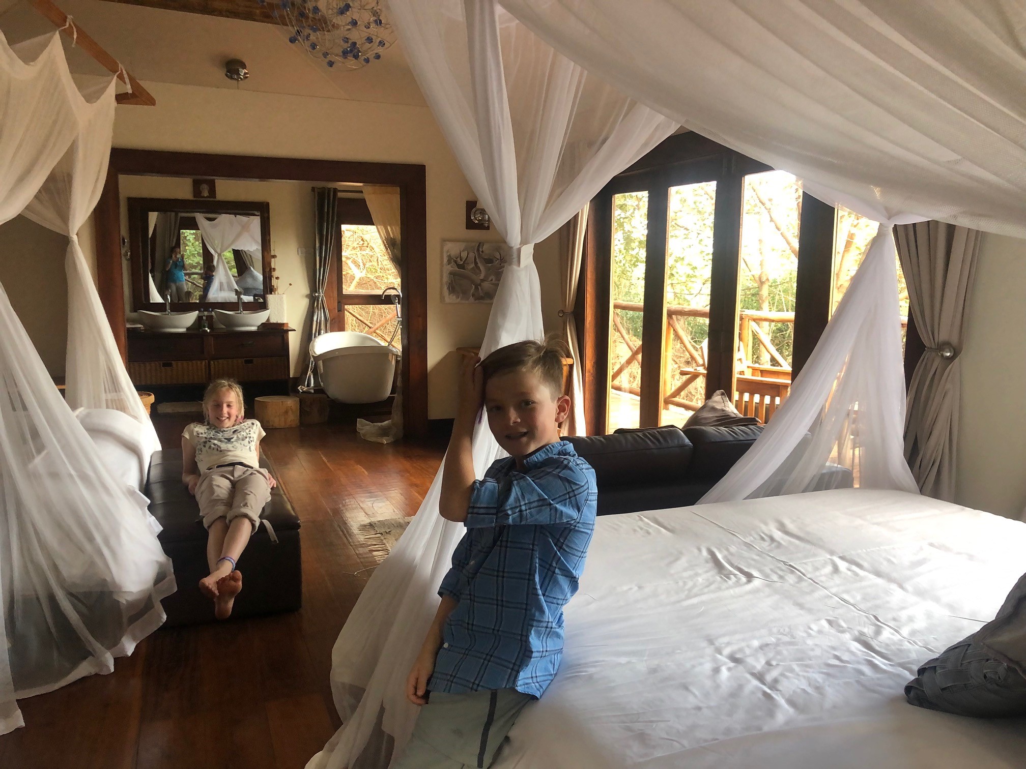 Die zweite Nacht wurde es noch besser - dort hatten die Kinder ein eigenes Haus und wir Eltern auch - mitten in der Wildnis. Zum Restaurant mussten wir jeweils eskortiert werden, da Elefanten und Büffel manchmal den Weg zum Restaurant unsicher machen🙂. Ihr seht also - Action pur!!!