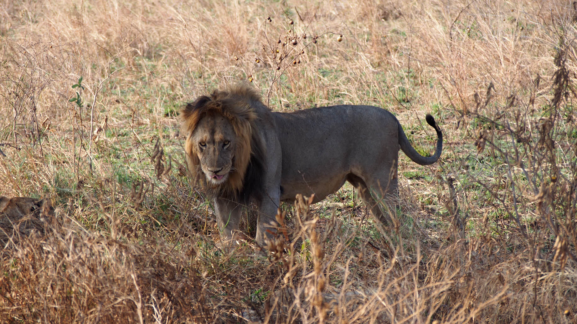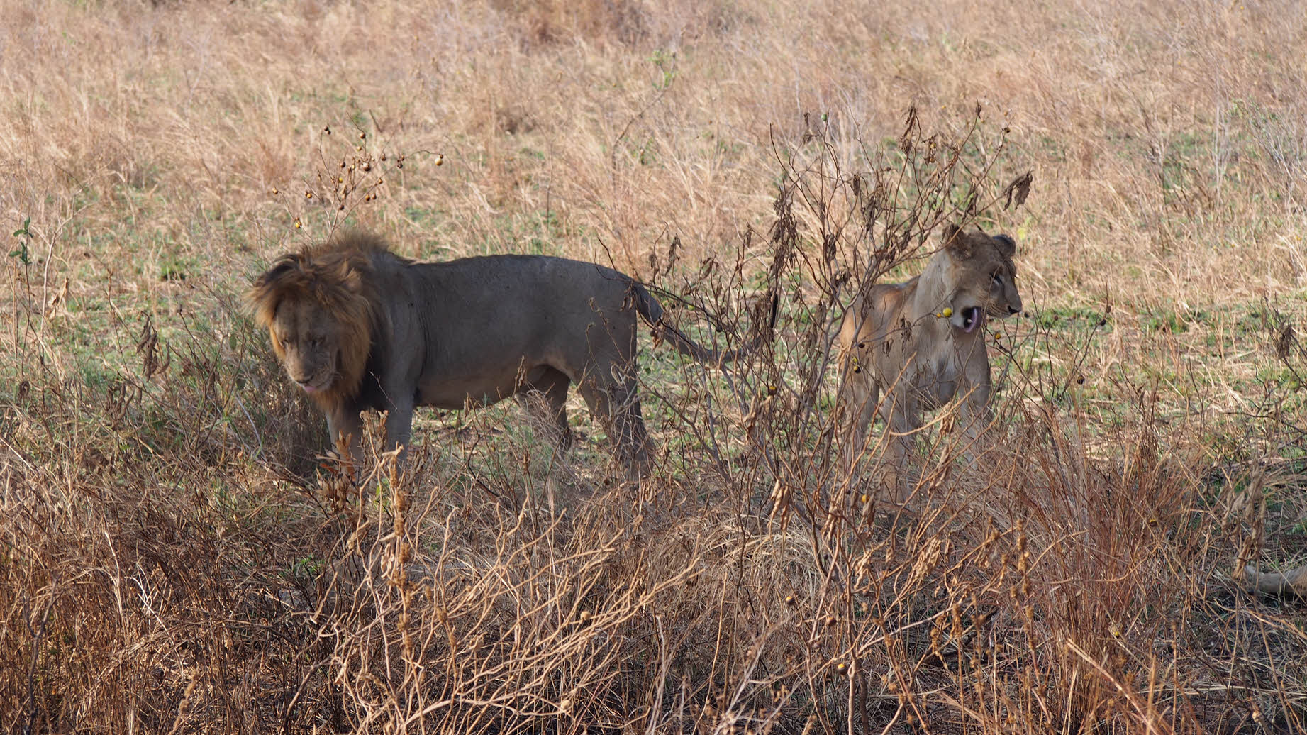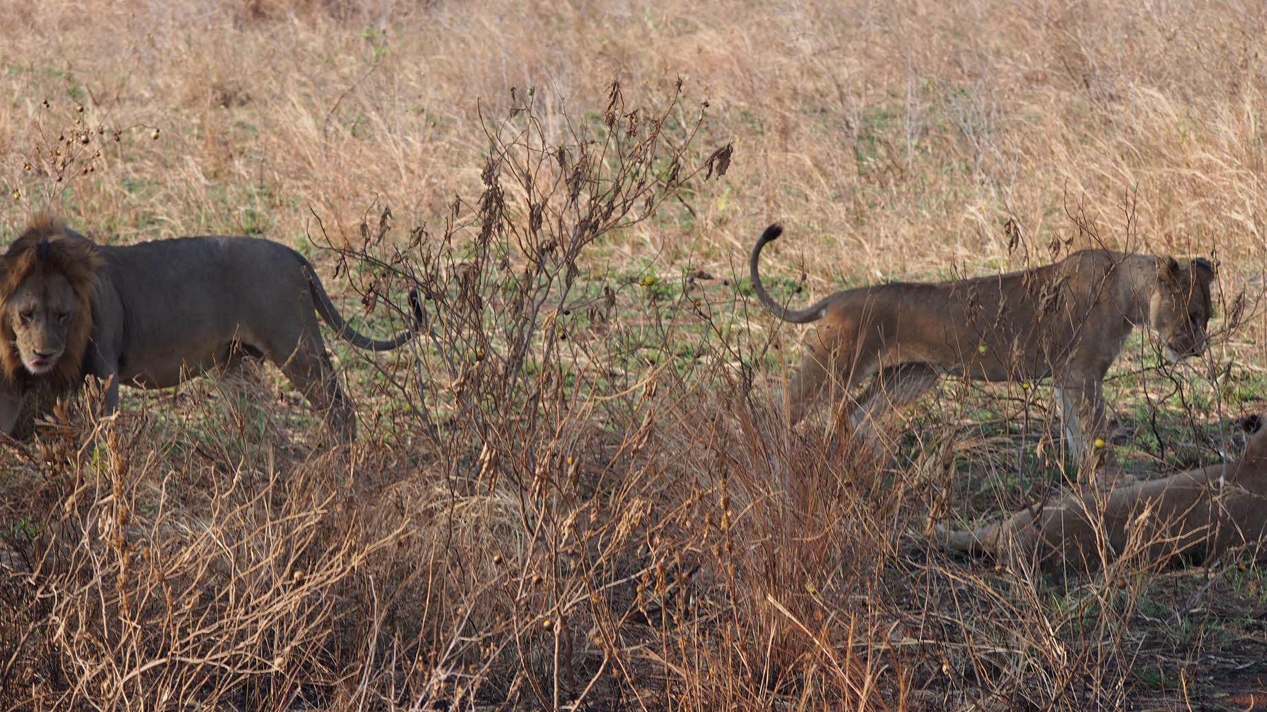 Etwas später sahen wir eine Gruppe Löwen neben uns im Gras liegen. Das Harems-Männchen hatte alle Hände voll zu tun, alle seine Weibchen zu begatten🤭