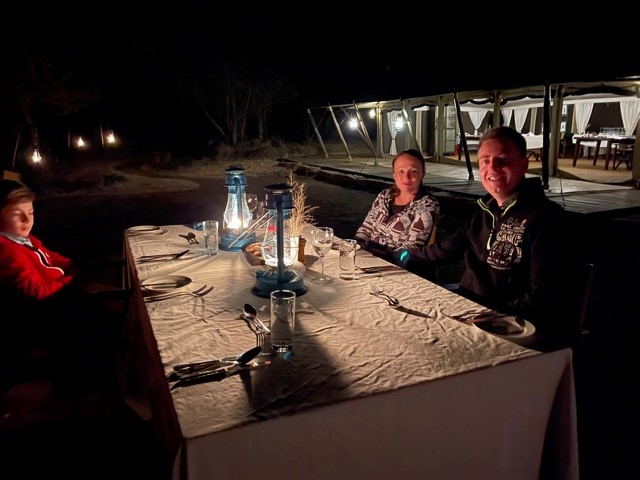 In der Nacht bewahrheiteten sich die Hinweise. Um etwa 1 Uhr nachts weckten uns Leoparde vor dem Zelt auf (es klingt wie Hundebellen) und um 4 Uhr brüllten die Löwen hinter unserem Zelt. Auch Baboon-Affen und Hyänen machten die Lautkulisse perfekt 🙄 Wir können dieses Camp wärmstens empfehlen, obwohl es total ausserhalb unseres Budgets lag und wir nur zufälligerweise hier übernachteten. Unser gebuchtes Hotel musste wegen Corona schliessen und deshalb erhielten wir dieses Hammer-Upgrade mit eigenem Butler Titus🤗.